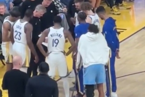 GIF-穆迪拄拐在场边观战 在队友战术圈外徘徊
