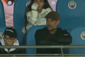 1、瓜迪奥拉看台化身谢尔比,头上的女儿一脸生无可恋